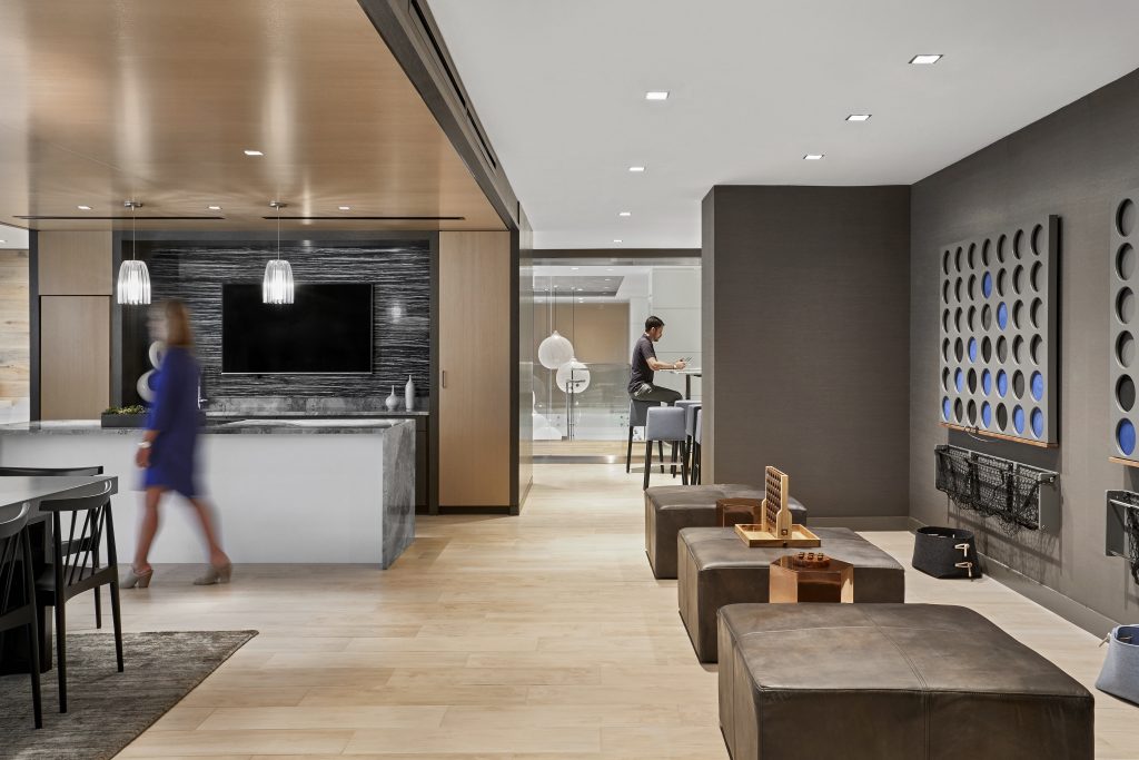 In Washington, DC, at F1RST Residences, the clubroom’s furniture was once moved to create an indoor ice-skating rink for a child’s birthday party. During the holidays, the clubroom kitchen allows someone in a studio apartment to cook a full meal, turkey and all, for visiting family. That is hospitality rooted in real life.