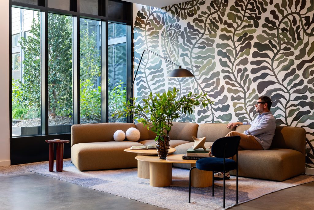 Inspired by the surrounding Greenway Trails and adjacent Big Branch Creek, nature is rooted in the design framework. Amenity spaces, such as the treehouse-like indoor-outdoor rooftop lounge, feature floor-to-ceiling windows that provide ample natural light. Shared spaces also include two courtyards, a dog park, a saltwater pool, a luxe pet spa, a fitness center and sauna, co-working lounges, and an entertainment kitchen.