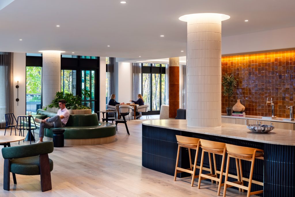 Located just five miles from downtown Raleigh, St. Albans Lofts has officially reached completion, bringing a brand new mixed-use community to the North Hills Innovation District. In collaboration with Kane Realty, the project comprises two residential buildings with over 400 units, shared luxury amenity spaces, and 5,000 SF of street-level retail, shaped by a unified approach from our architecture and interior design teams.