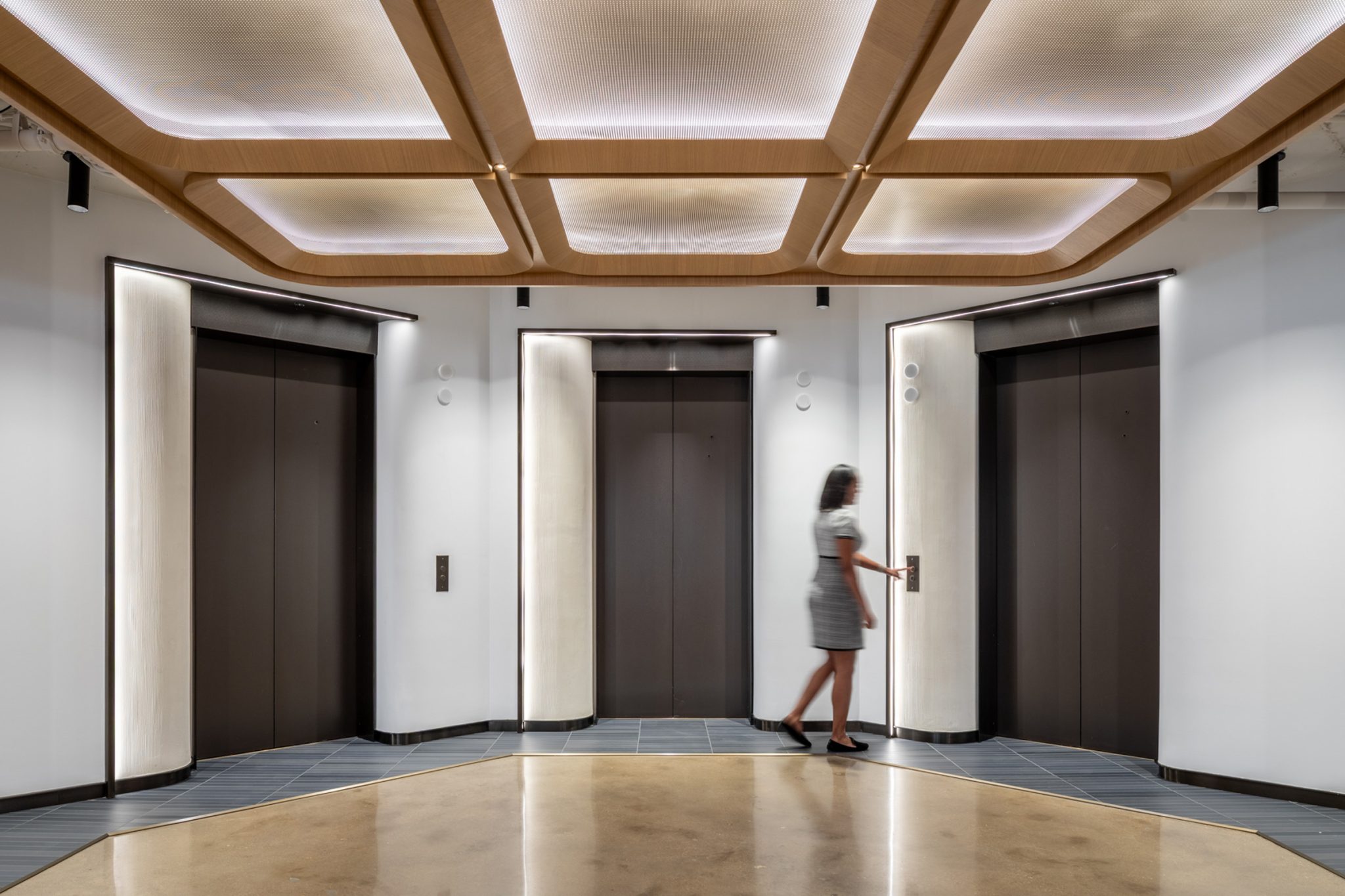 The interiors of the upgraded locker rooms and fitness center draw inspiration from the building’s iconic brick archways, achieving the sought-after balance between contemporary vision and historical continuity. These innovative and forward-thinking modifications set the design precedent for the rest of the building.