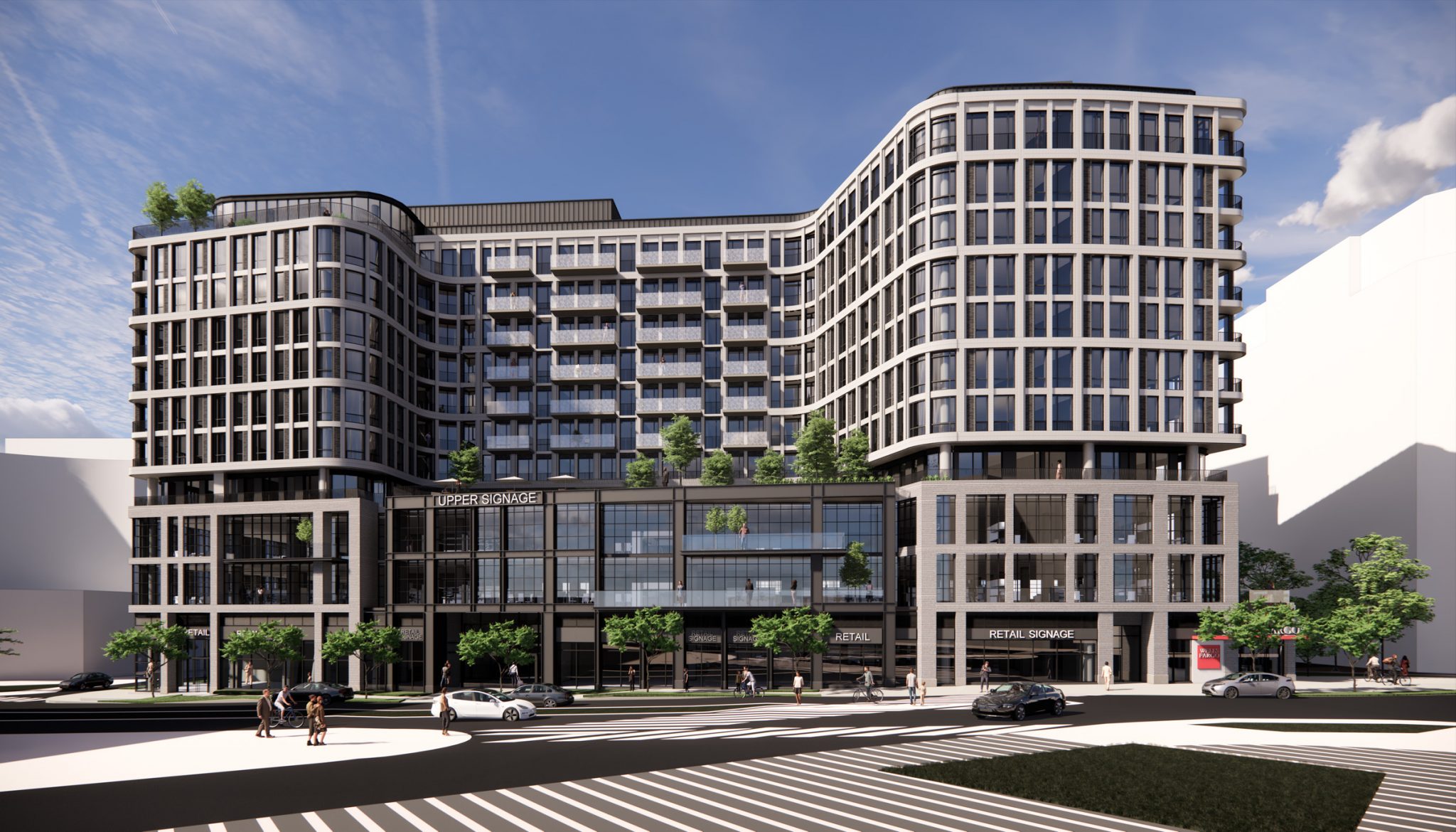 A true mixed-use development combining ground-floor retail, office, and residential, 3140 Washington reimagines the Clarendon Sector Plan. The design focuses on expressing each use while also providing clarity to a frenetic urban environment with a strong three-story podium along the Boulevard. The residential community oriented above will focus on health and wellness with large outdoor areas and generous private balconies. The project is currently in design review as a part of the Arlington County 4.1 approvals process.