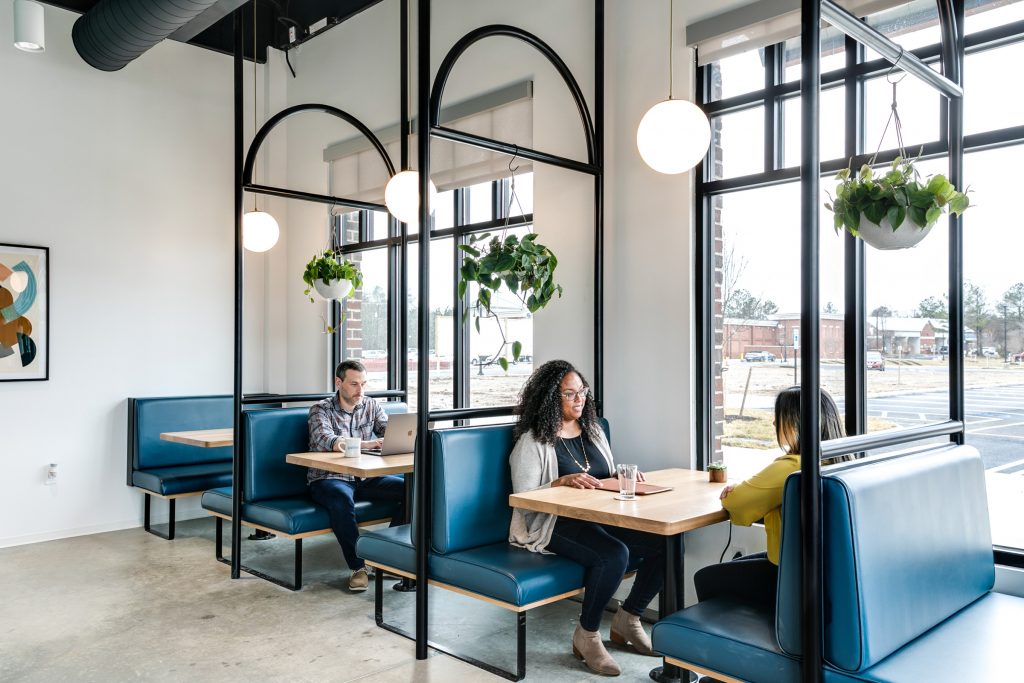 Extending its footprint beyond Richmond-proper to capture the city’s suburban remote workforce, Gather’s 26,000-SF Midlothian location serves as a collaborative hub that highlights local history while celebrating the coworking community’s mission to position local entrepreneurs for success.