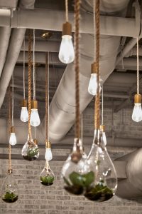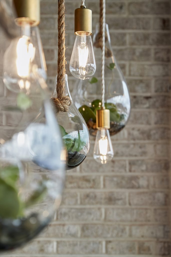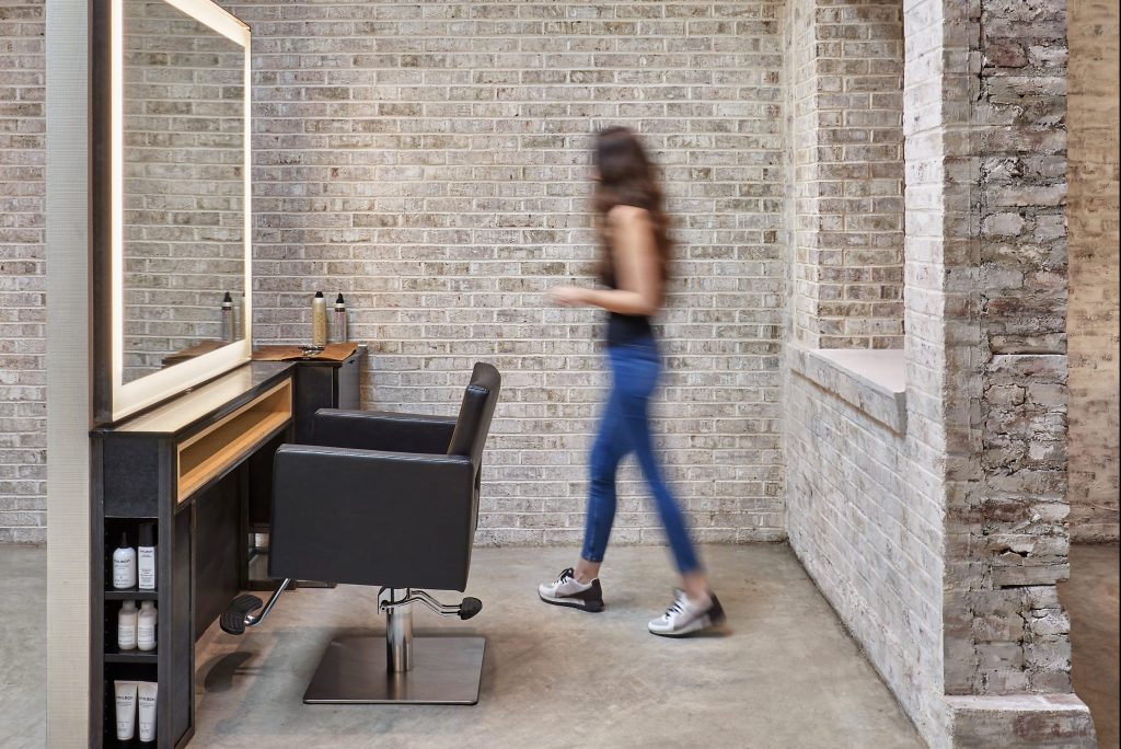 Hospitality-inspired features elevate the space further, including charging stations available at each vanity for client use during time-consuming treatments. Suspended mini terrariums and greenery add an unexpected touch of nature for clients as they sit through hair-washing, making the space more visually interesting and evoking feelings of tranquility. As sessions end, a coffee and espresso bar is made available to clients, re-energizing them following a period of pure bliss and relaxation at the salon.