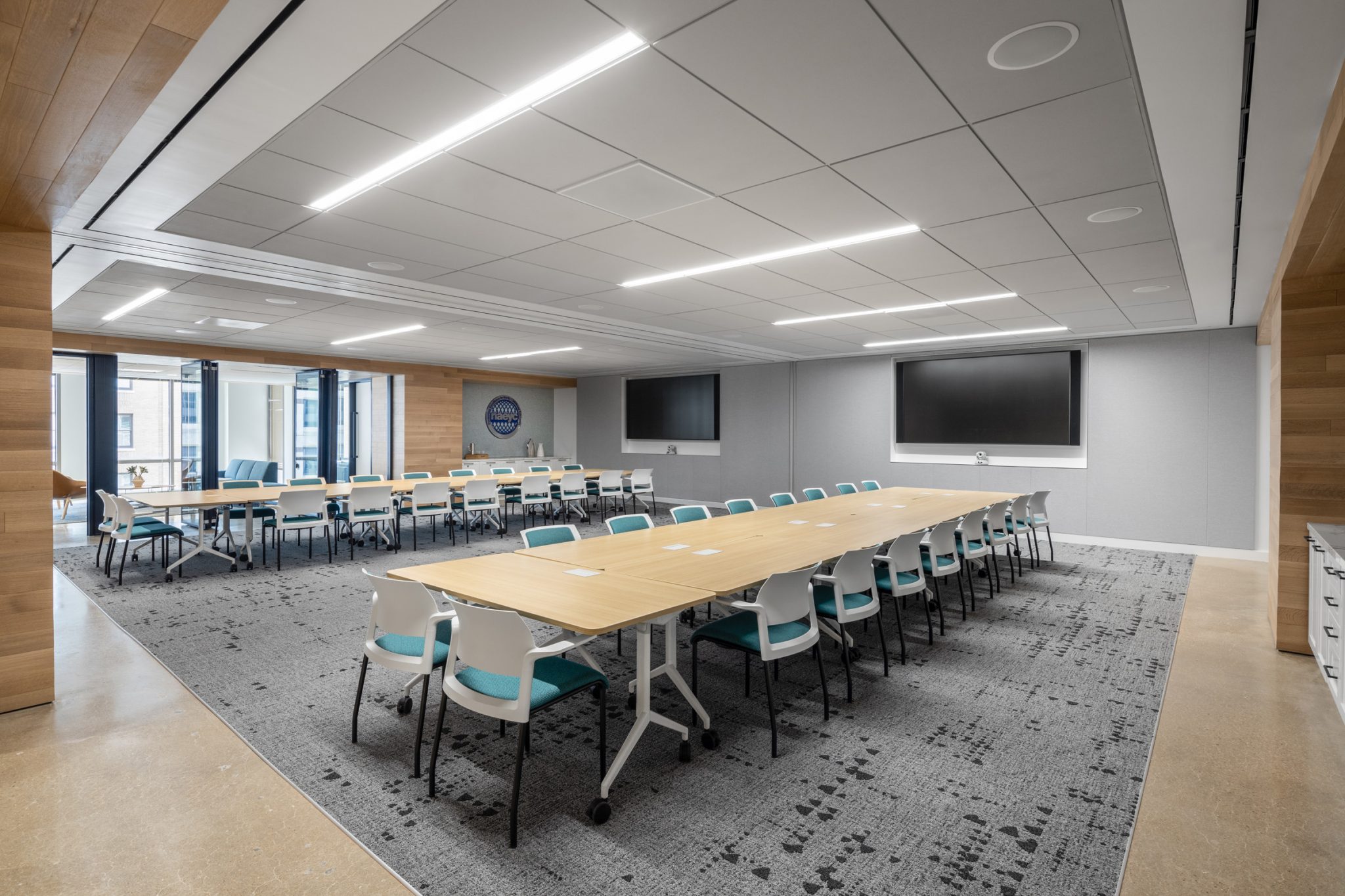 A warm, sophisticated reception area and lounge welcome guests into the public-facing amenity center, designed to support and streamline the many functions NAEYC hosts year-round. A flexible main conference room connects to multiple break-out areas while an adjacent café provides convenient catering capabilities. Prominently located display areas provide multiple opportunities to showcase NAEYC’s brand and proudly highlight recent achievements.