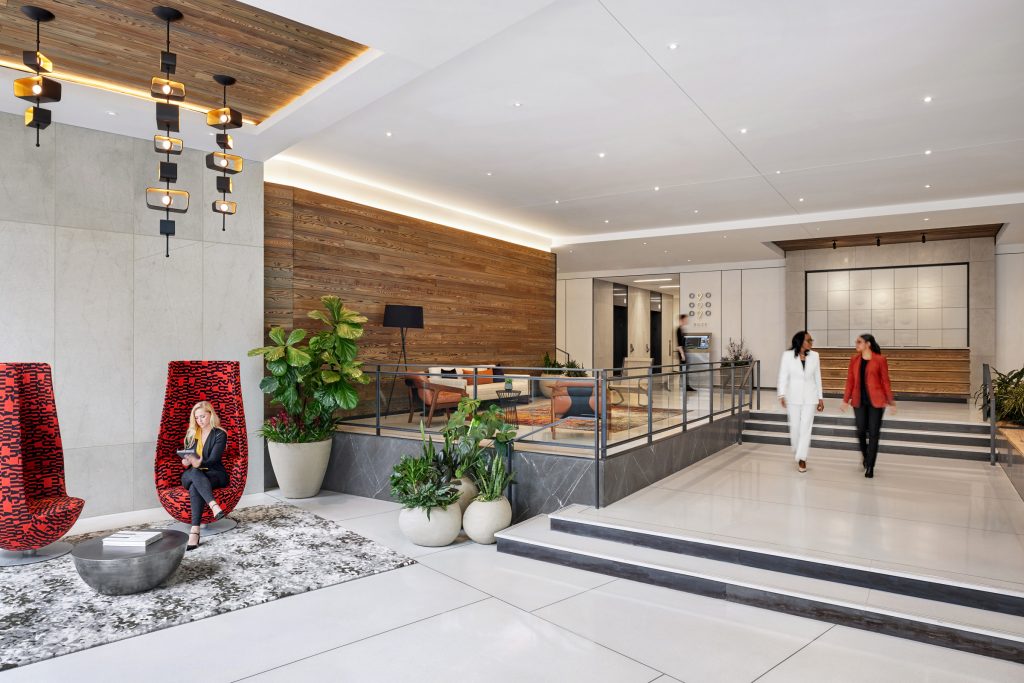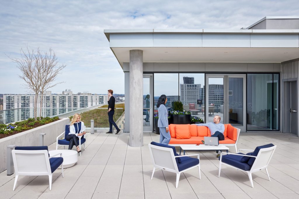 The building features the world-class amenities and services in demand by today’s workforce, which include lounge spaces and collaborative meeting rooms with WiFi, on-demand catering, a flexible conference center, a fitness center with full service locker rooms as well as a bike storage in the garage. With multiple outdoor terraces, tenants have access to sweeping views of the neighborhood at the fourth and eleventh floors as well as a rooftop with a gracious outdoor terrace.