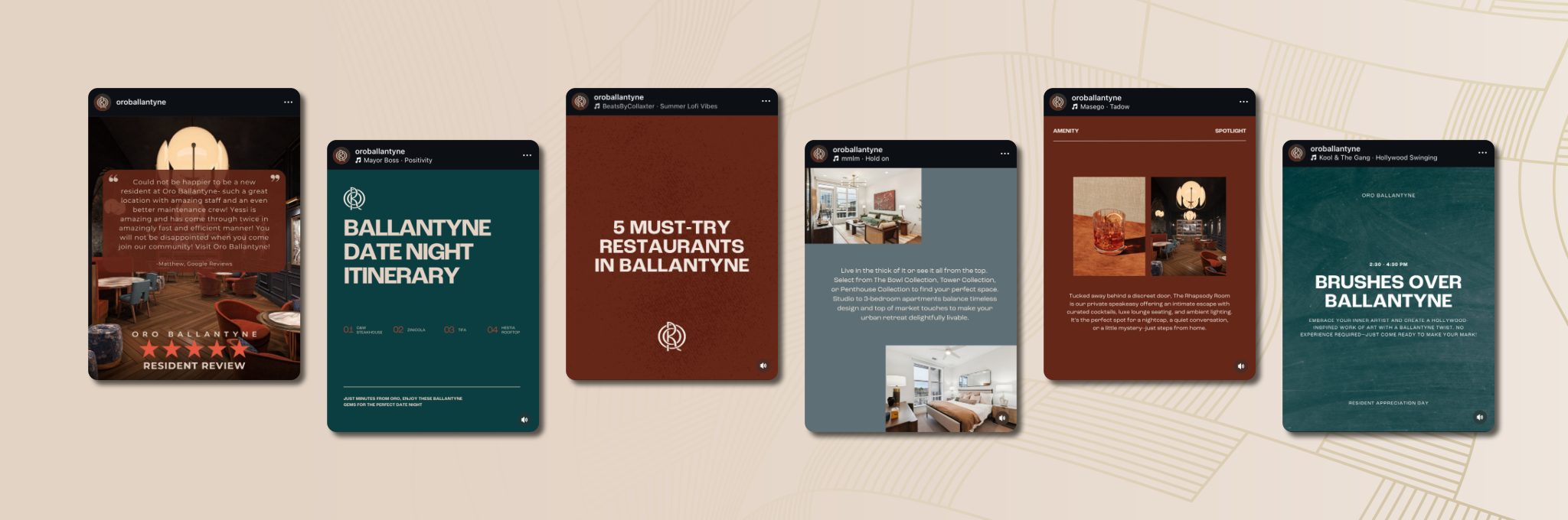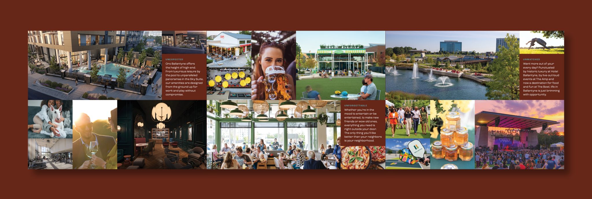 The Oro Ballantyne kit of parts pairs fashion house swagger, seasonal sophistication and leisurely lifestyle aesthetic. Together the kit expresses an attractive, destination-focused attitude, representative of the building’s unexpected amenity suite, unforgettable neighborhood offerings, and altogether unmatched living experience.