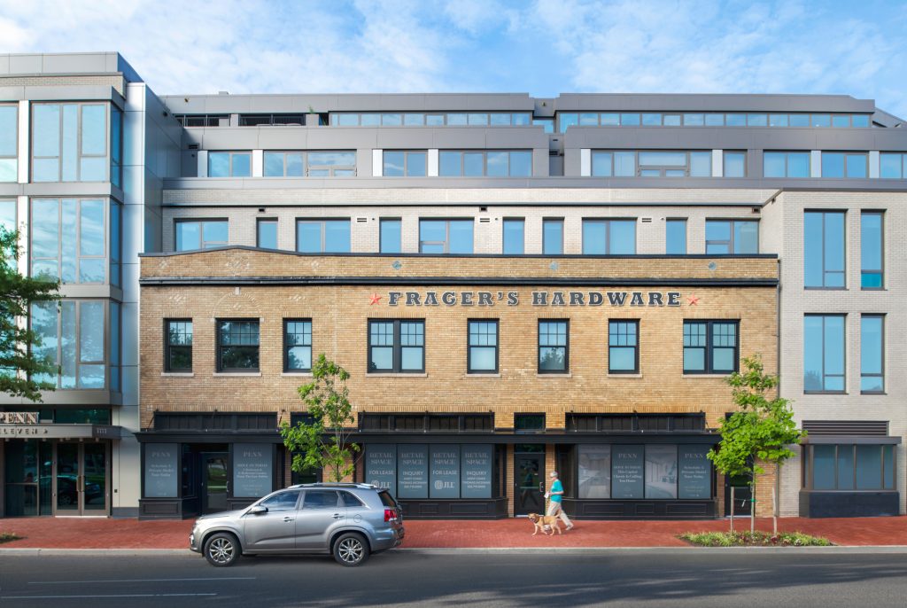 Under the guidance of the Historic Preservation Review Board, the original façades of the historic Frager’s Hardware building are preserved, including the original Frager’s sign. The redevelopment allowed for a significant expansion of the Frager’s retail space, including the addition of a below grade level and parking.