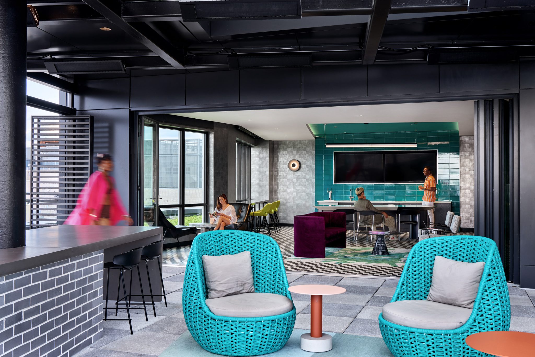 Inspired by the Shaw neighborhood’s musical roots, this 313-unit luxury apartment community features expansive amenities including an open-air fitness terrace, coworking, rooftop pool and kitchen, and pet spa. Glamorous, moody, and always unexpected, the design celebrates the energy and soul of the surrounding music scene.