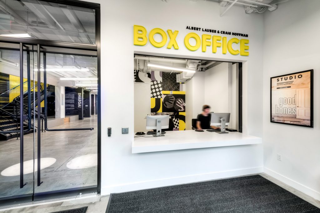 New signage and a bright yellow facade activate the streetscape, engaging the public with a new customizable window signage display announcing upcoming programming. A relocated ticketing booth at the entrance allows for more efficient ticket retrieval while opening up the lobby for receptions and intermissions. A glass box at the rear provides a venue for hosting private gatherings, readings, and events.