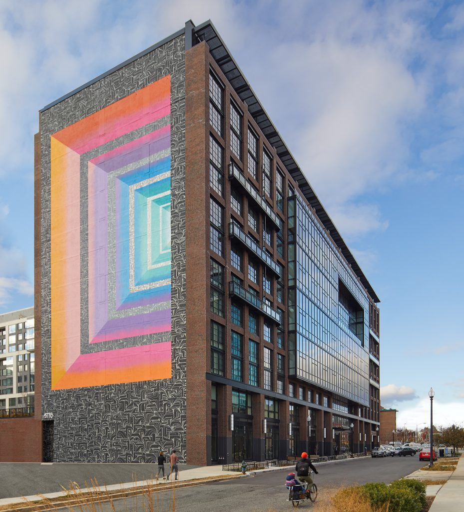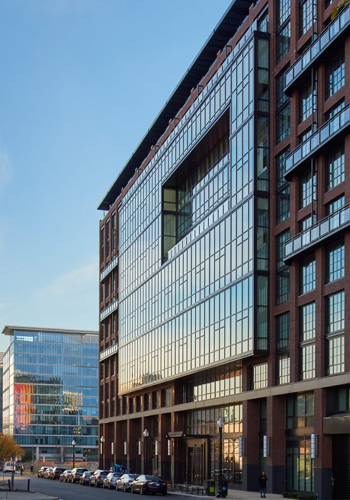 The Belgard’s industrial design embraces the aesthetic nature of older buildings re-purposed for modern use with a brick, metal, and glass façade. A bold mural leans into the neighborhood’s reputation for street art while making a memorable mark on the DC skyline.