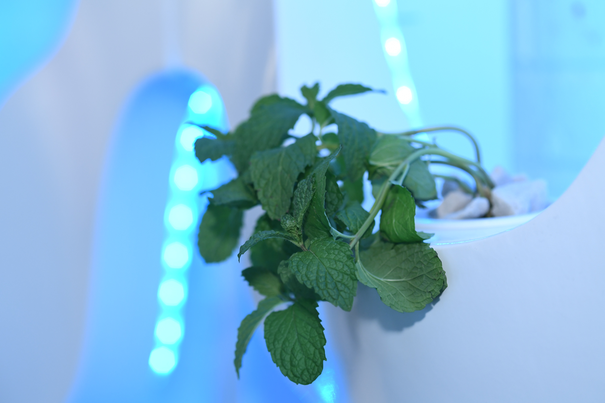 HydroSkin, like any other hydroponic circuit, consists of a reservoir for storing water and adding nutrients. This reservoir benefits from two pumps: a submersible water pump inside the reservoir to circulate nutrient-rich water to all participating planters, and an air pump outside the reservoir to maintain water oxygen levels. Each plant is placed into a net-pot which lives in its own respective container. The reservoir is connected to the containers through a series of rubber tubes responsible for circulating the water to the plants and back. Reservoir PH and EC levels are monitored and adjusted to assure consistent healthy plant growth.
